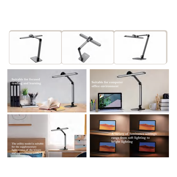 Aluminium ABS Touch-dimbar flerbruksbordlampe er laget av en blanding av aluminium og ABS-materialer, som er slitesterk og stilig. Aluminium gir den en moderne appell med sin glatte overflate, mens ABS sikrer spenst, noe som gjør den egnet for daglig bruk i en rekke miljøer, enten det er en koselig stue, en minimalistisk arbeidsplass eller et elegant soverom.